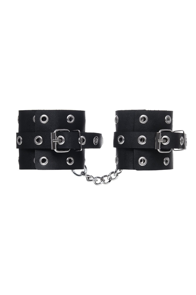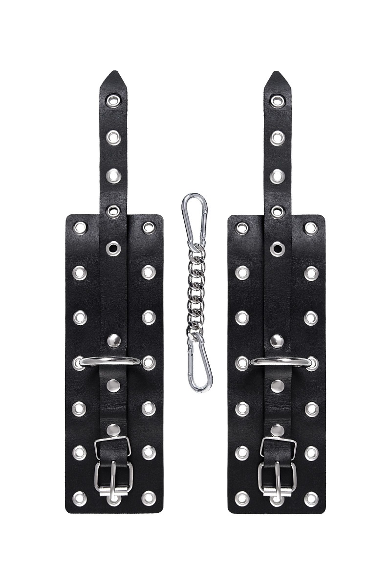 Эти однослойные кожаные наручники с люверсами могут стать стильным аксессуаром, а могут послужить вашим целям по своему прямому назначению. Частичное обездвиживание и невозможность двигать руками дают вам полную власть над партнером – взрослые игры для взрослых. Наличие двух колец и карабинов, соединенных между собой металлической цепочкой, позволяет использовать изделие как раздельно – аксессуар-манжеты, так и как наручники для фиксации. К широким металлическим кольцам также можно присоединить и другие аксессуары при помощи карабинов. Благодаря универсальному размеру наручники могут использоваться и мужчинами, и женщинами. Размер легко регулируется с помощью металлических пряжек, органично вписывающихся в общий стиль. Длина манжет - 20 см, ширина - 6,5 см. Длина сцепки - 13 см.