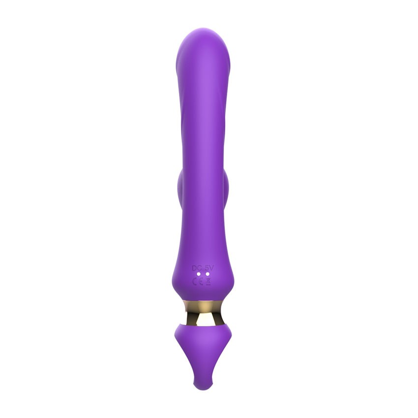 Фиолетовый вибратор-кролик с вакуумной стимуляцией клитора. 10 режимов вибрации, 10 режимов вакуума. Рабочая длина - 11,8 см.