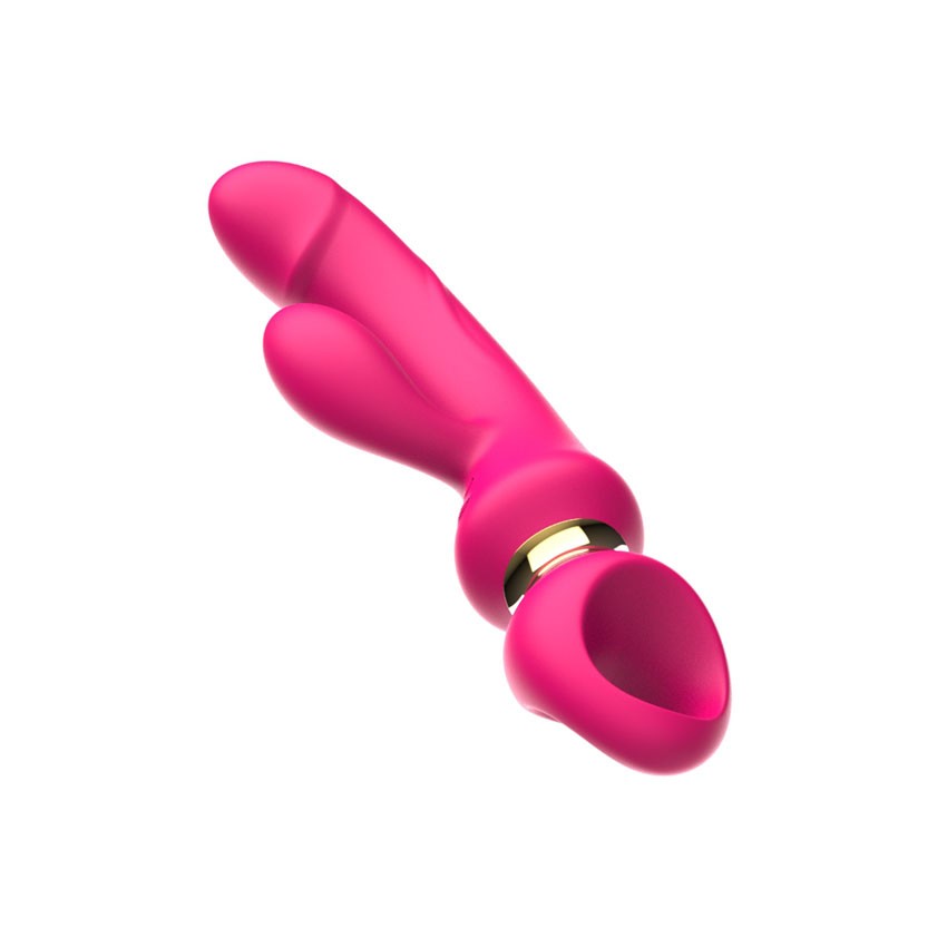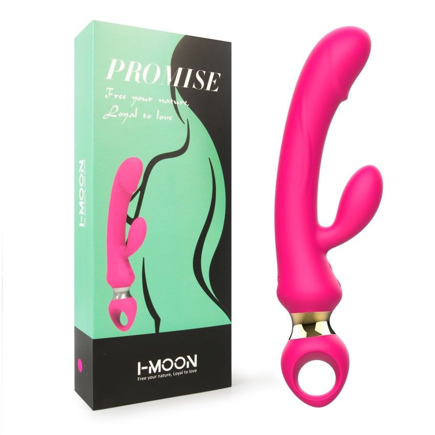 Розовый вибратор-кролик с ручкой-кольцом. 10 режимов вибрации. Рабочая длина - 13,3 см.